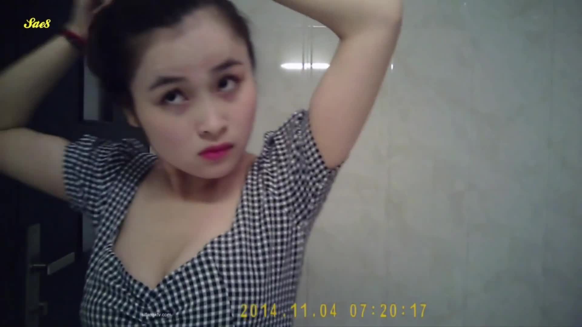 酒店浴室双面镜偷拍巨乳服务员